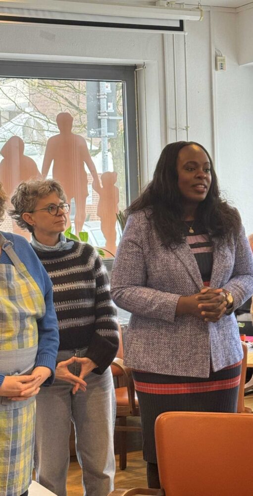 Im Rahmen des Paritätischen Praktikums des Paritätischen Region Hannover konnte die Grüne Landtagsabgeordnete Djenabou Diallo Hartmann einen Tag lang praktische Einblicke in die inklusive Arbeit der Mitgliedsorganisation Sozialgenossenschaft Aktiv DabeiSein gewinnen. Begleitet wurde sie von der Geschäftsführerin des Paritätischen Region Hannover, Bianka Bradler, sowie vom Vorstand von Aktiv DabeiSein.