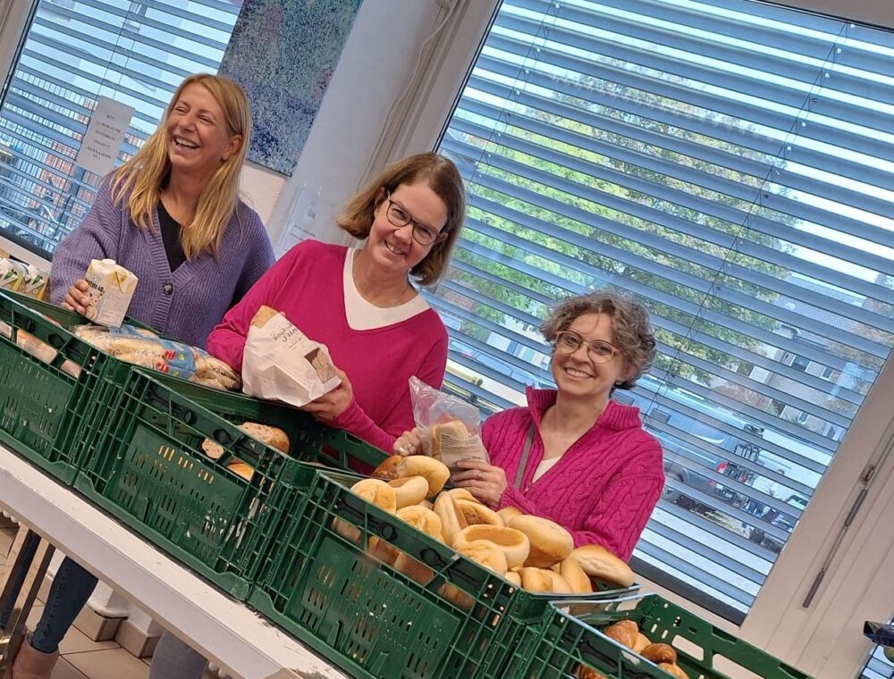 Gemeinsam mit Katja Mankow, die zusammen mit Gabriele Kuhn die Geschäftsführung der Obdachlosenhilfe verantwortet, lernte die Politikerin die Abläufe der täglichen Arbeit kennen. Sie stellte viele Fragen, zeigte reges Interesse an den Herausforderungen der sozialen Arbeit und unterstützte aktiv bei der Ausgabe an die Klient*innen.