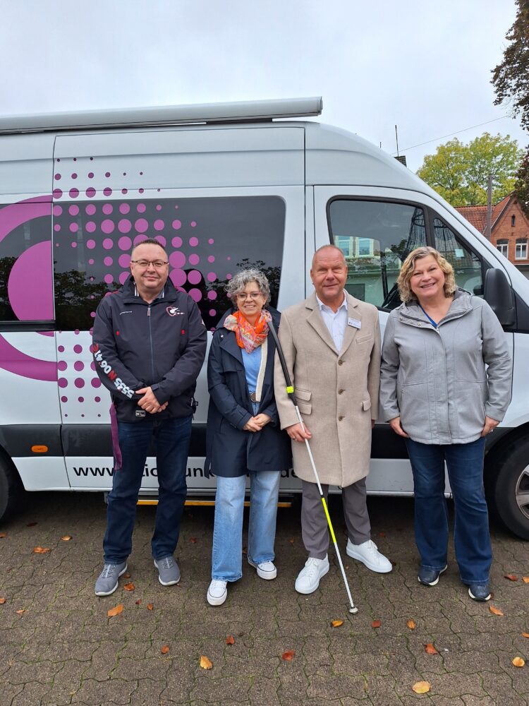 Ein besonderer Programmpunkt war der Einsatz des „Blickpunkt-Auge“-Mobils, das Menschen mit Sehbeeinträchtigung wohnortnah berät und informiert. Gemeinsam mit der Beraterin Ute Spangenberg und Gerd Rodeck aus dem Team des BVN machte sich Regina Hogrefe in Bothfeld ein Bild von der mobilen Beratungsarbeit.